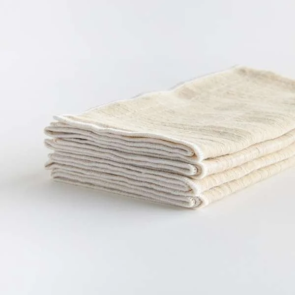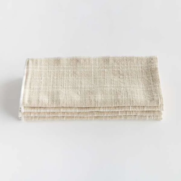 Set of four dinner napkins brings a touch of softness to the table with this set of four cotton napkins. Beautiful in tone and texture, the soft taupe is made to coordinate with any tablescape.