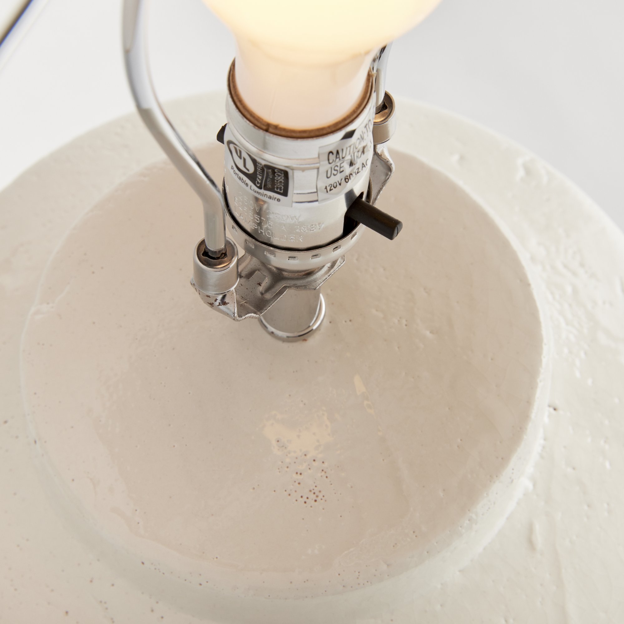 This sweet little off-white ceramic lamp is at home in any coastal setting. The textured cream shade and petite base make it a versatile piece. Great for kitchen counter, bookshelf or desk.